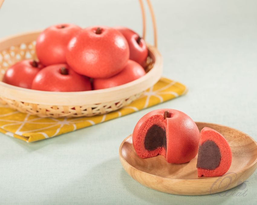 紅蘋果象徵「平平安安,吉祥如意」,另外一個寓意代表我愛你,在歐洲還是愛情、婚姻、青春、繁育、春季、長壽、不朽的標誌。仿真蘋果造型饅頭,內餡採用獨家研發減糖絲滑紅豆餡製作,降低糖度減少熱量,保持紅豆純正風味,營養又健康。