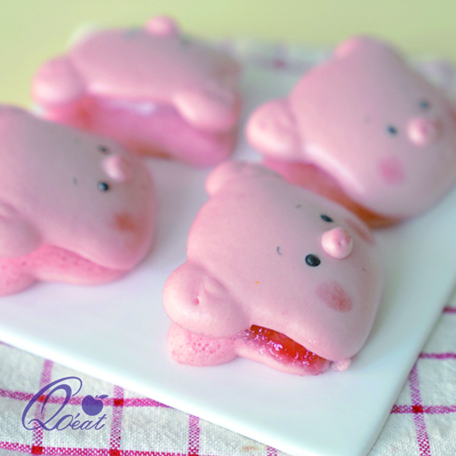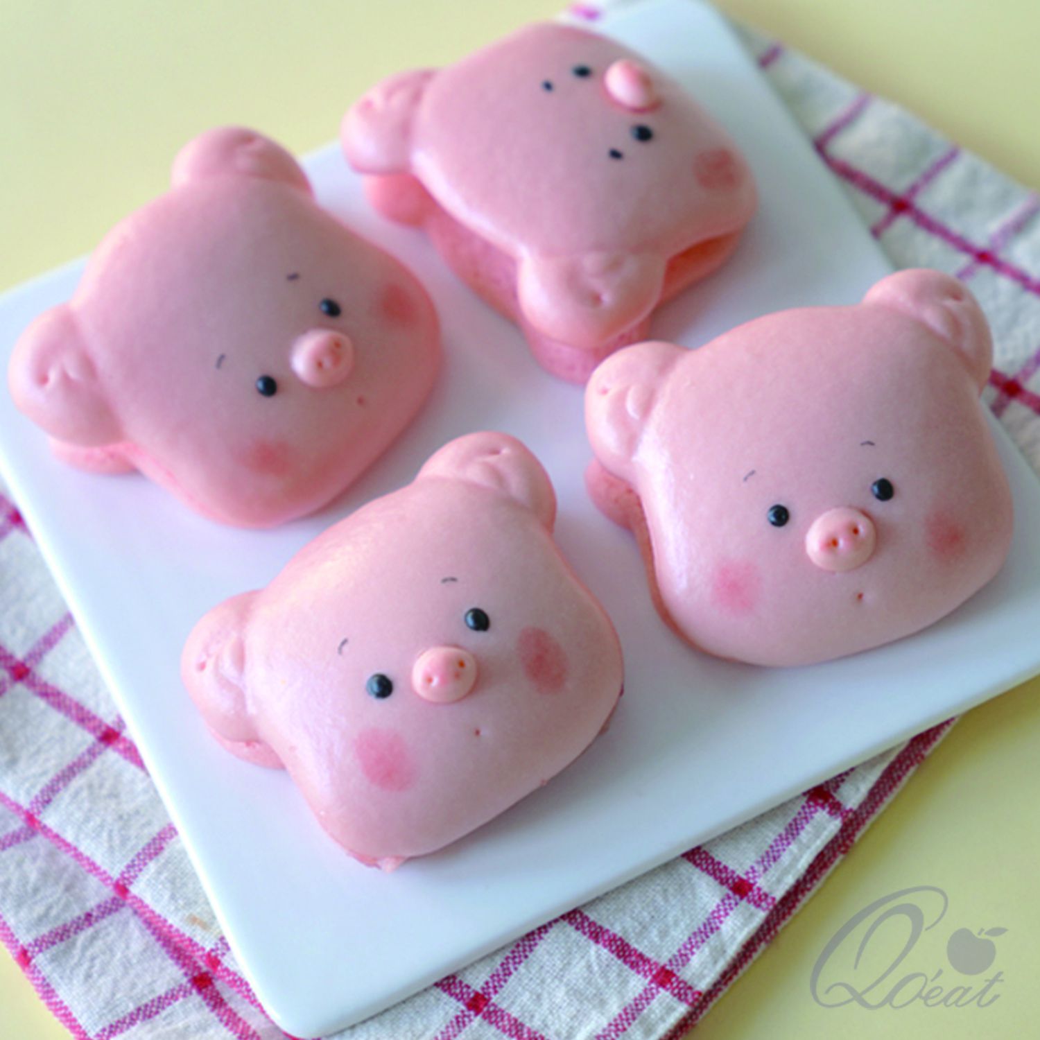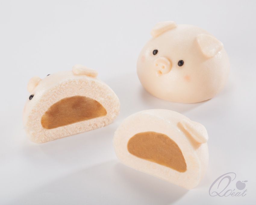 可愛的粉紅小豬造型饅頭,內餡採用獨家研發焦糖牛奶餡,香甜可口,大人小孩都喜歡。