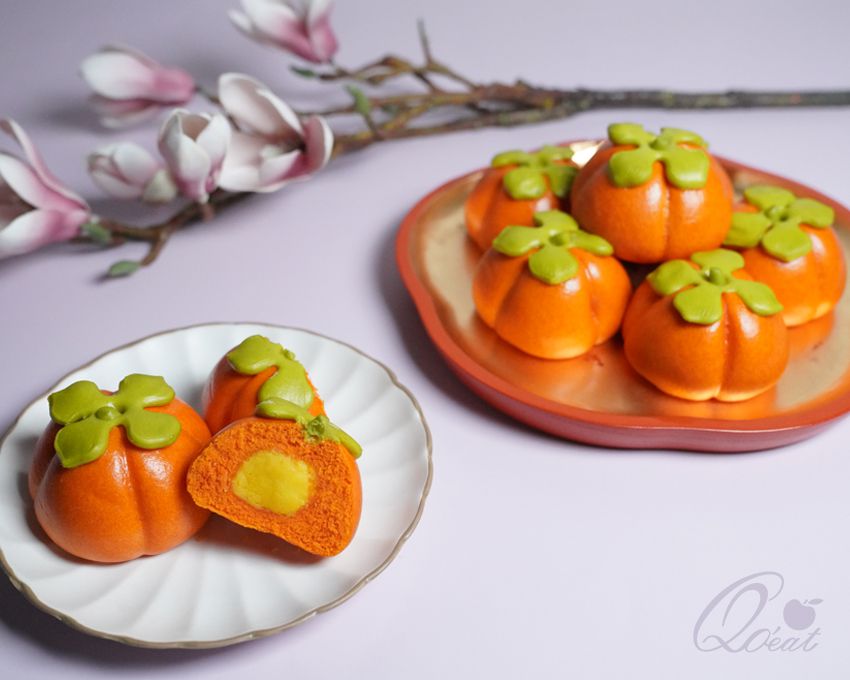 柿子果實豐厚圓碩、形如如意,成熟時變紅,象徵著火紅喜慶吉祥。「柿」與「事」諧音,寓意「事事如意」,送禮自用最佳選擇 。仿真柿子造型饅頭,內餡採用獨家研發橘子香氣奶黃餡製作,微酸口感搭配外皮鬆軟香甜,營養又健康。