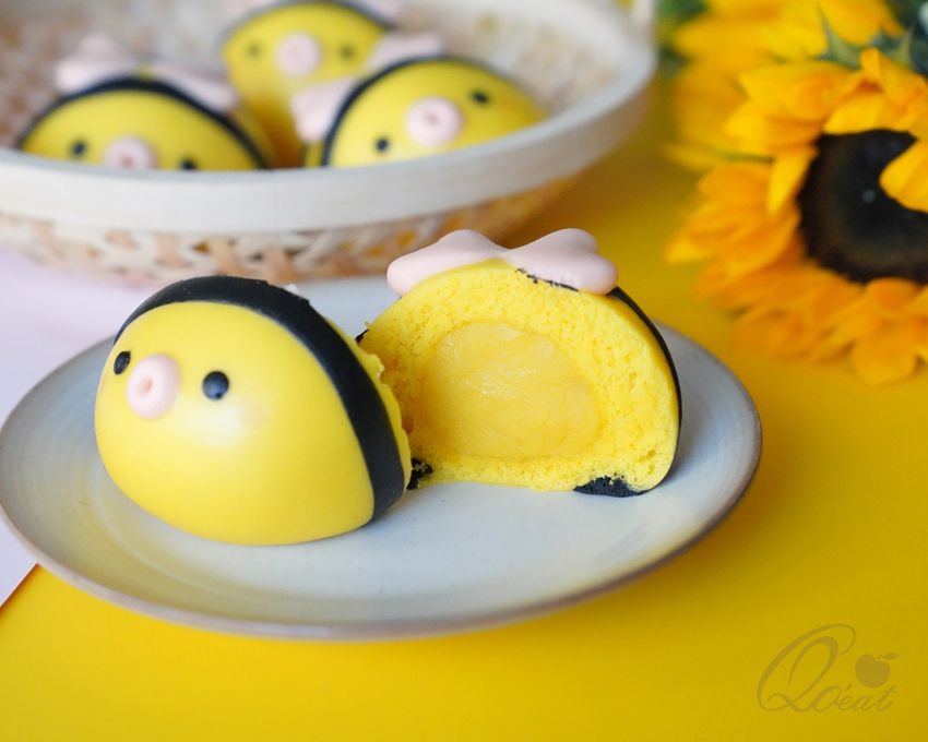 想要有餡料的寶貝可以吃看看,超獨特的果香口味奶黃,外面可是吃不到的喔!嗡嗡嗡~最愛的小蜜蜂造型來囉!吃完早餐也快樂上學!