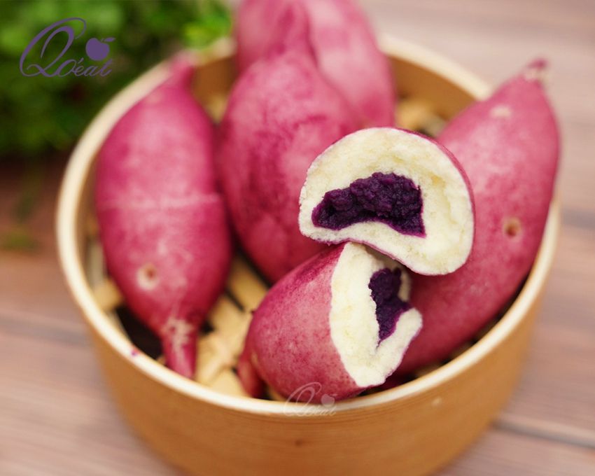 仿真紫地瓜造型包子,內餡採用天然紫薯和法國發酵奶油製作,口感粉潤厚實、鬆軟香甜,富含花青素和膳食纖維,營養又健康。從內到外手工製作,產量有限售完即止,請您務必提早訂購喔!