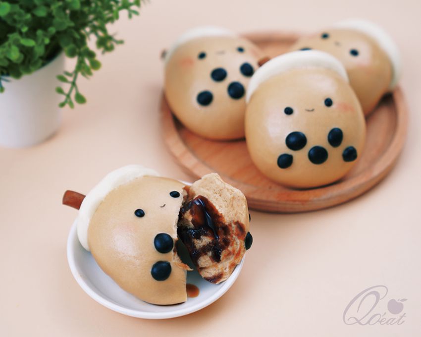 使用100%鮮乳+沖繩黑糖製作,沖繩黑糖融入100%鮮乳當中,與SQF-Level 3最高等級驗證麵粉揉製出來柔軟Q彈的外皮。手工包入爆漿沖繩黑糖內餡,搭配奶茶杯子寶寶的笑臉,一整個被融化了!
