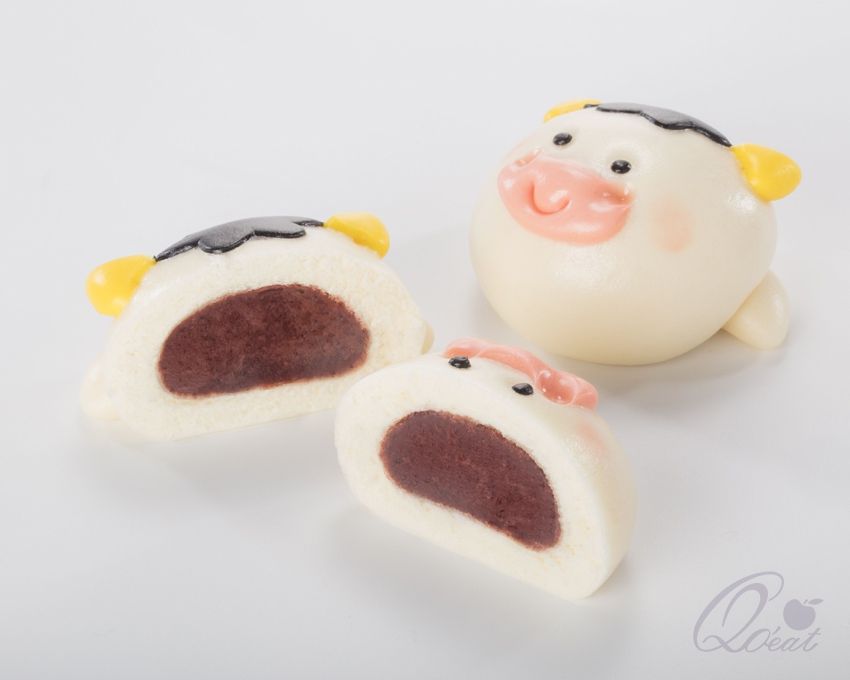 牛年最受歡迎的乳牛造型饅頭,內餡採用獨家研發減糖絲滑紅豆餡,奶香濃郁,營養又健康!