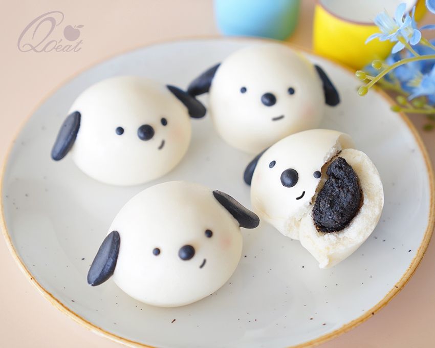 可愛的Happy狗狗鮮乳芝麻包,內餡採用獨家研發芝麻餡,香甜可口,大人小孩都喜歡。