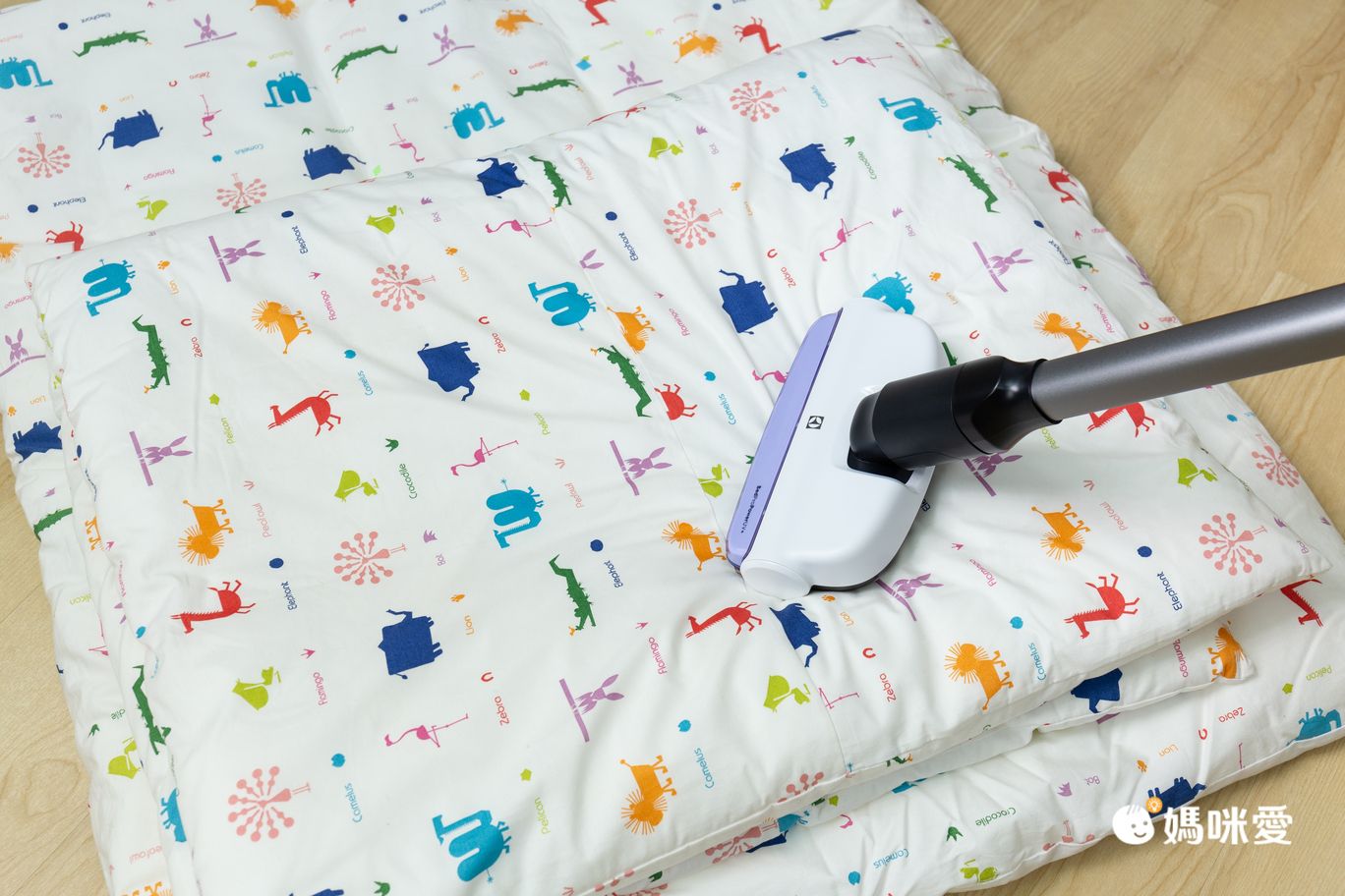 UV床墊電動吸頭可去除與塵螨同尺寸小至1微米的微粒,平時像是寶貝的睡袋、棉被、枕頭都很適用~