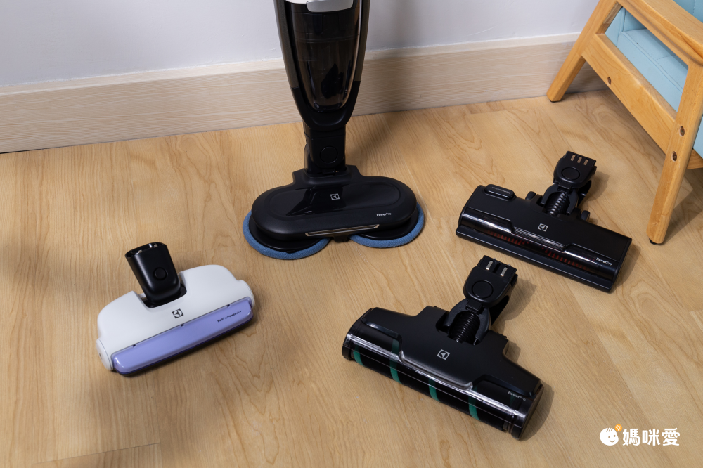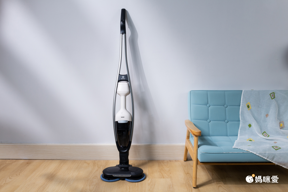 有用過濕拖功能的媽咪一定知道,用過就回不去了(淚),這次開箱時也是子子編第一次使用乾濕合一的吸塵器,大大被驚艷到了!只要換上濕拖吸頭、黏上濕拖布,拖地的同時吸頭底盤也會旋轉,大大提升時間效率,不用來回拖好多次,一次就乾淨溜溜~~~而且吸頭的扁身設計+可左右擺動的關節,最低可以低至6cm!沙發和櫃子底下都能好好清理了。