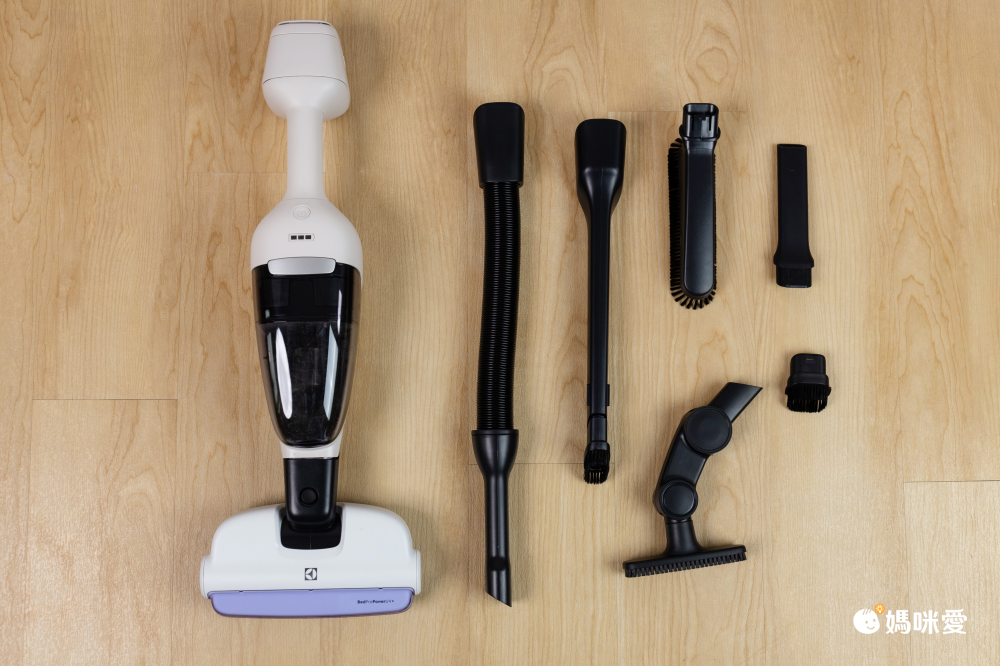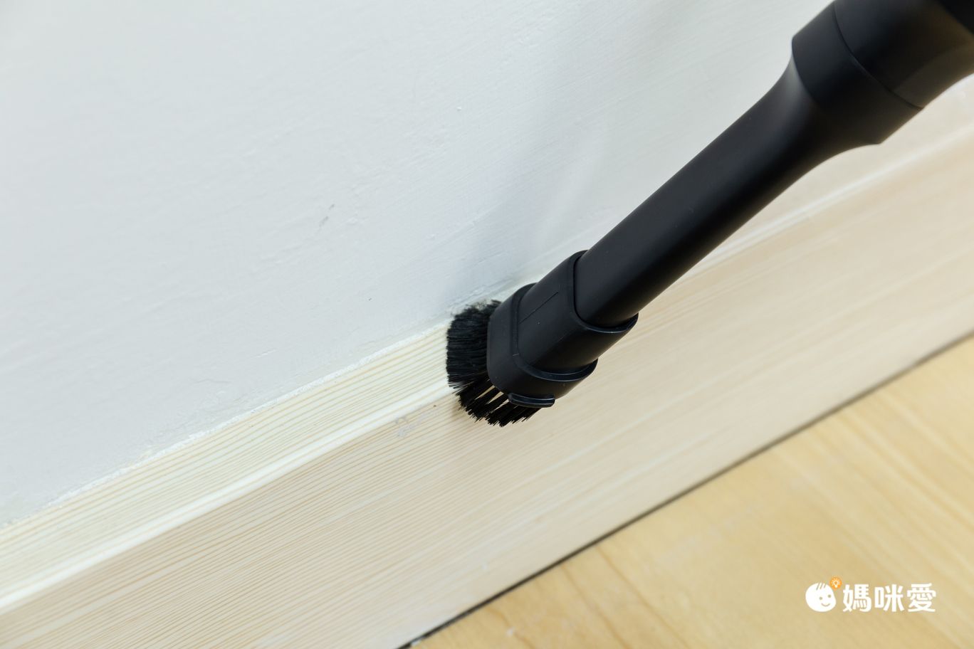 有時候還會有更小、更細的灰塵,那就交給有刷毛的吸頭,實測吸力真的很強~ 編媽家的大兒子(把拔)會拿來清理他公仔櫃xD