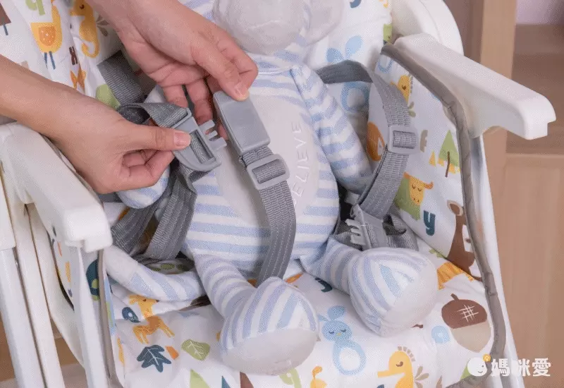 五點式的安全帶設計也讓安全度大大提升,不怕孩子因為動來動去或不小心睡著而跌落餐椅