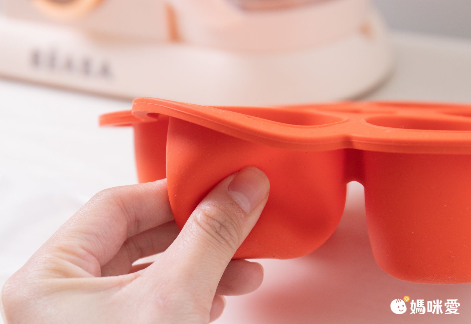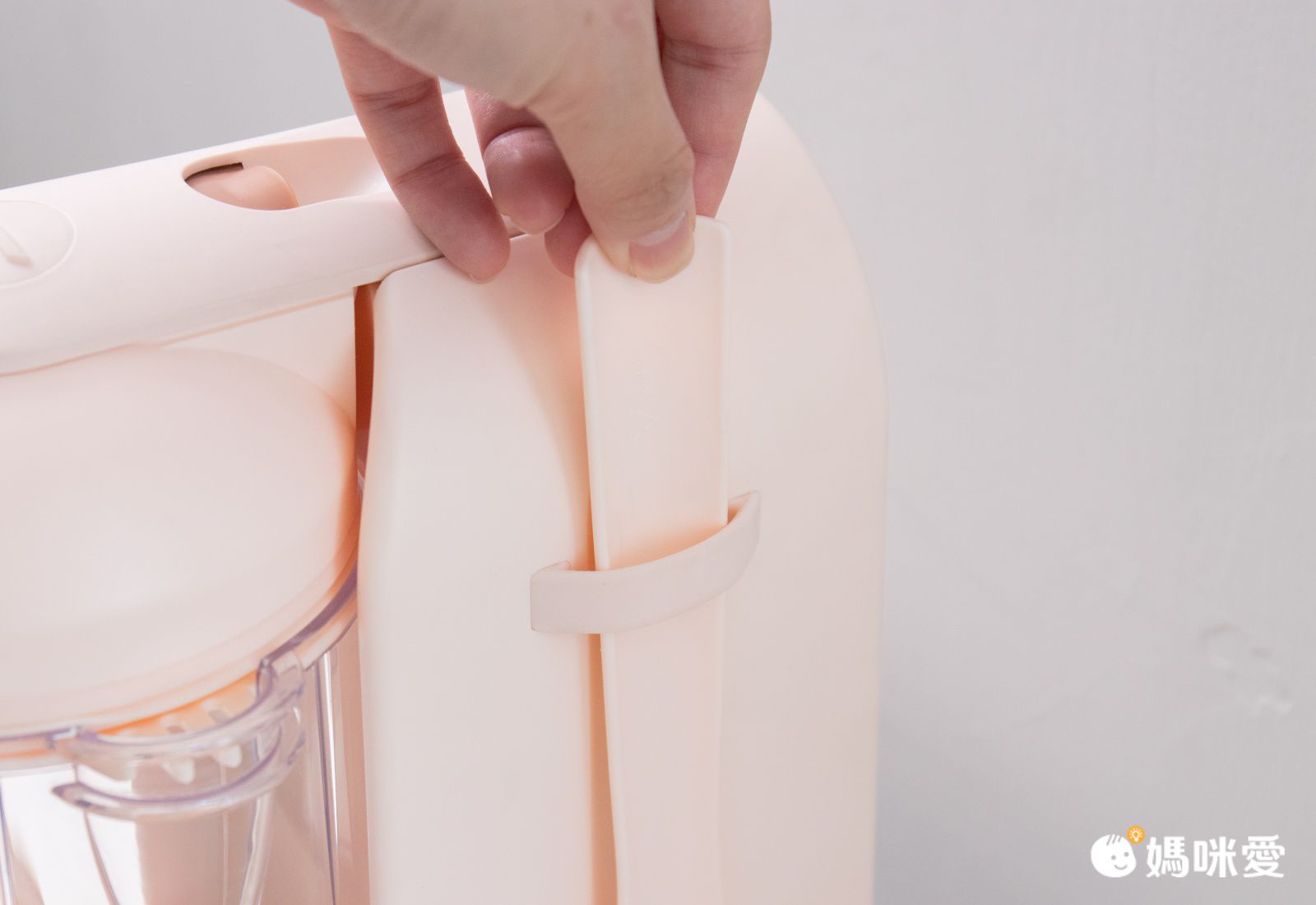 從兩側的溝溝將刮勺穿過,就能把蒸煮籃拿起來了,商品安全貼心設計,保護媽媽避免被高溫燙傷或是刀片割傷