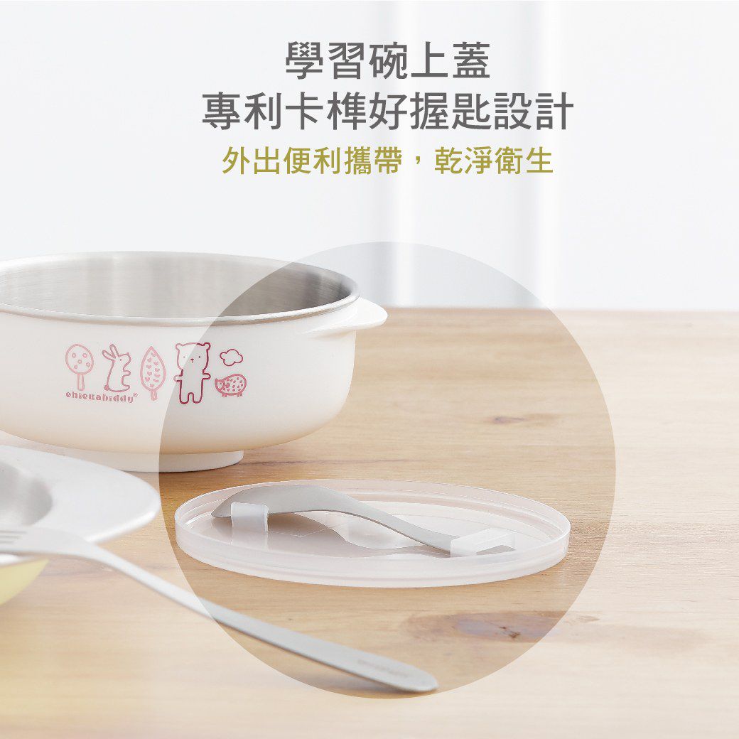 學習碗上蓋專利卡榫,輕鬆卡住握匙,外出攜帶更方便