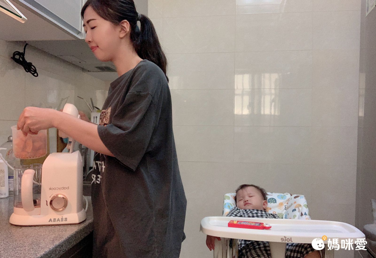這天媽咪中午先用了南瓜湯給喬喬喝,看他待在餐椅裡等到睡著了,媽咪也不用擔心他不小心碰到利器會受傷