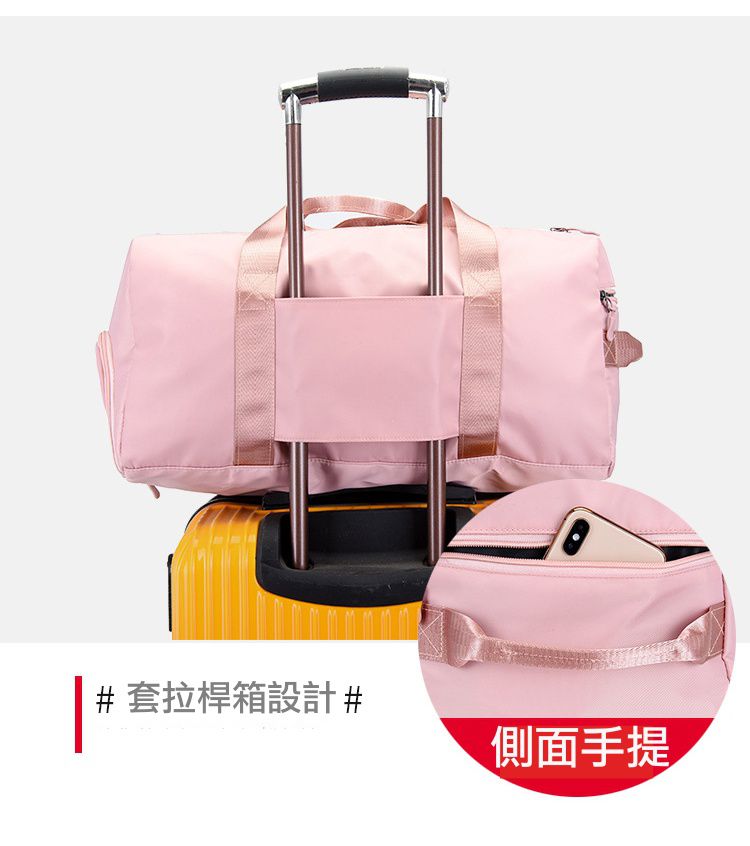 背帶拉桿固定設計,外出移動時不再需要調整手提袋的長度或一直抓著手提把固定,單手更輕鬆~