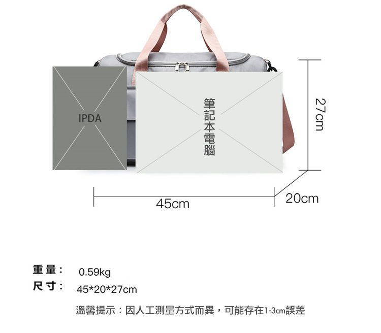 簡約設計不論用來放運動裝備或是外出旅行袋都可以!手提、斜背、側背,任你隨意調整~