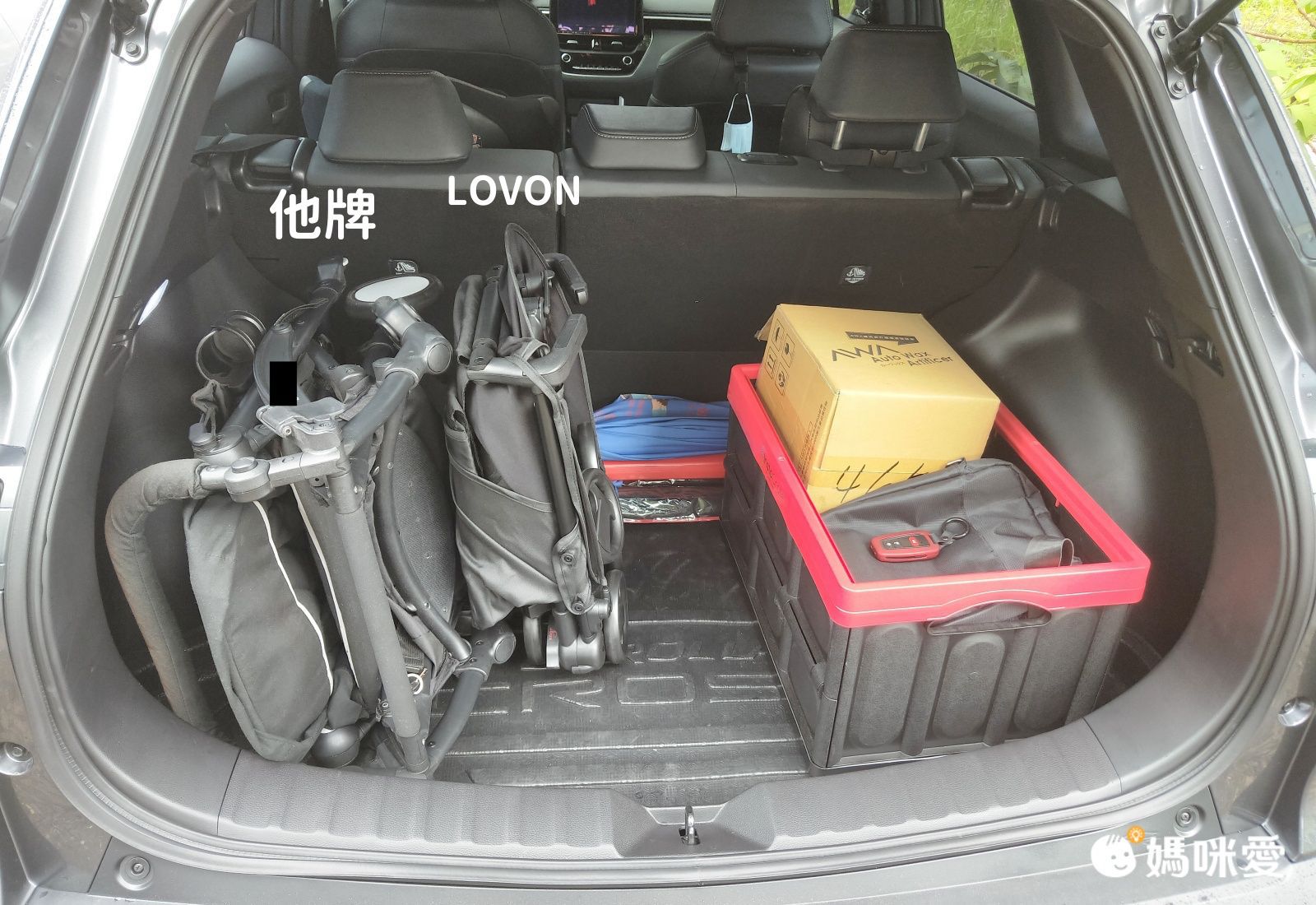 跟之前 Kylie 6歲的小哥哥 Kai 用的恩典牌推車一比,折起來厚薄度也只有一半而已,真的很省後車廂空間!如果之後要出去玩,真的不用再一直喬位子,就算放在後座座椅前也OK