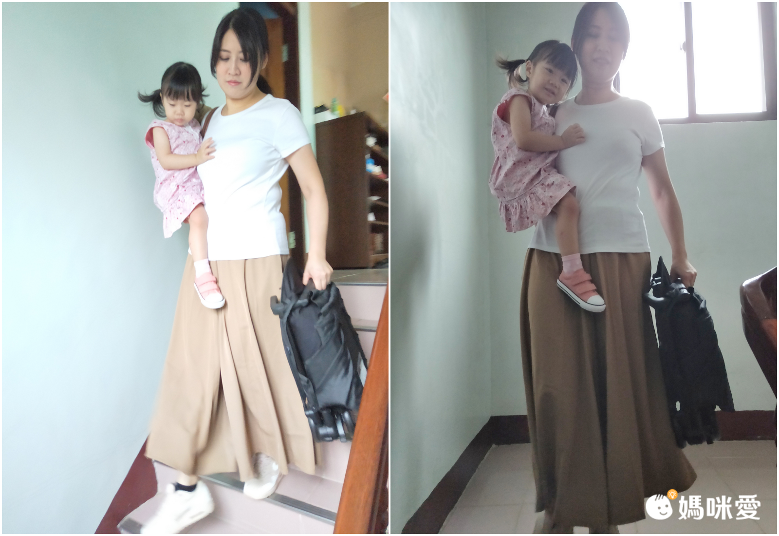 之前回家看到這樓梯,想到還要把推車扛上樓就不想出門了XD但自從家裡有這張推車,就算爸比不在家,媽咪我即使單手抱著Kylie還背個包,另一隻手還可以拿著推車下樓,優雅登場~