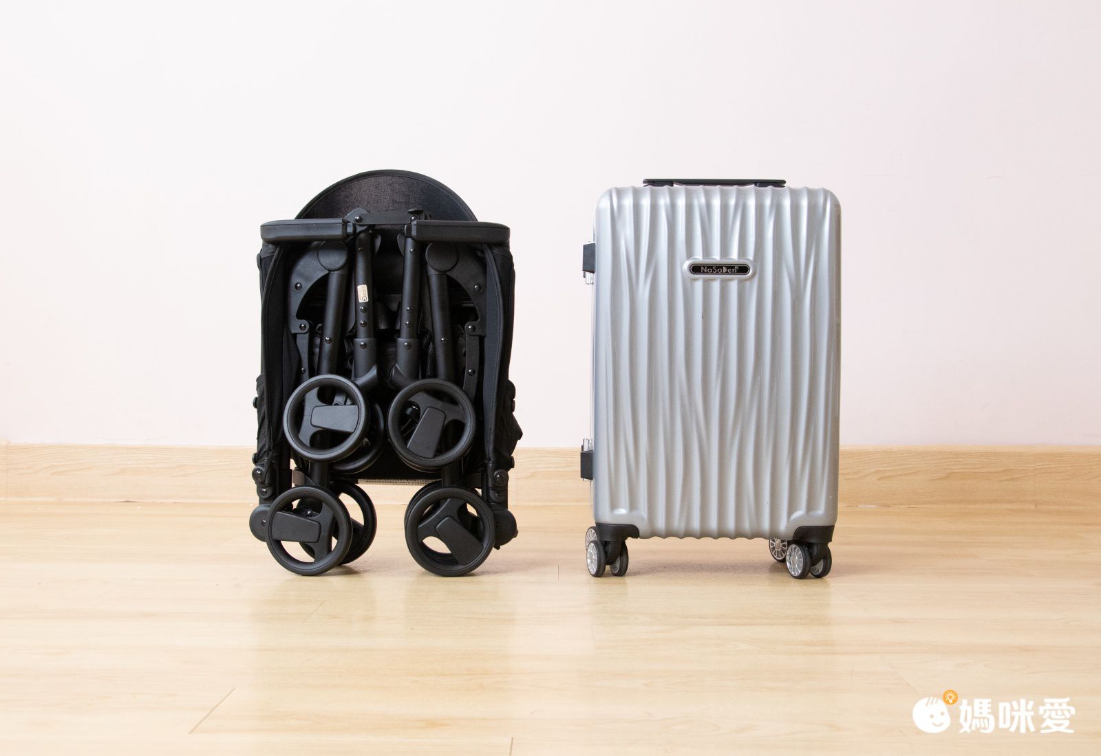 沒錯~他的大小就是跟登機箱差不多大而已喔!真的顛覆編媽對推車的想像啊~這張照片還有一個特點,收折後竟然不會不支倒地!站得挺挺的,完全不擔心去外面用的髒兮兮