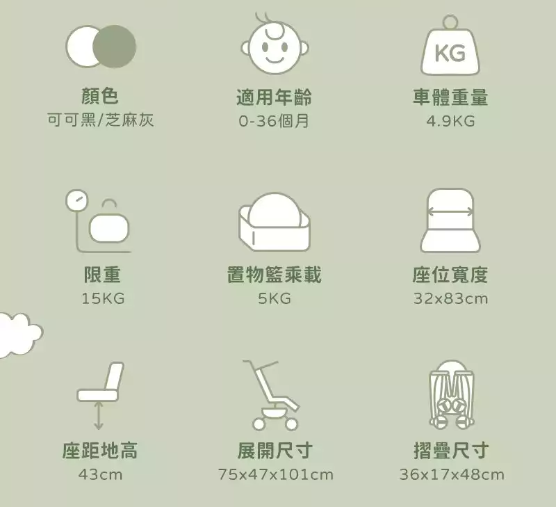 重量/乘載量:車體重量4.9kg,限重15kg,置物籃承載5kg