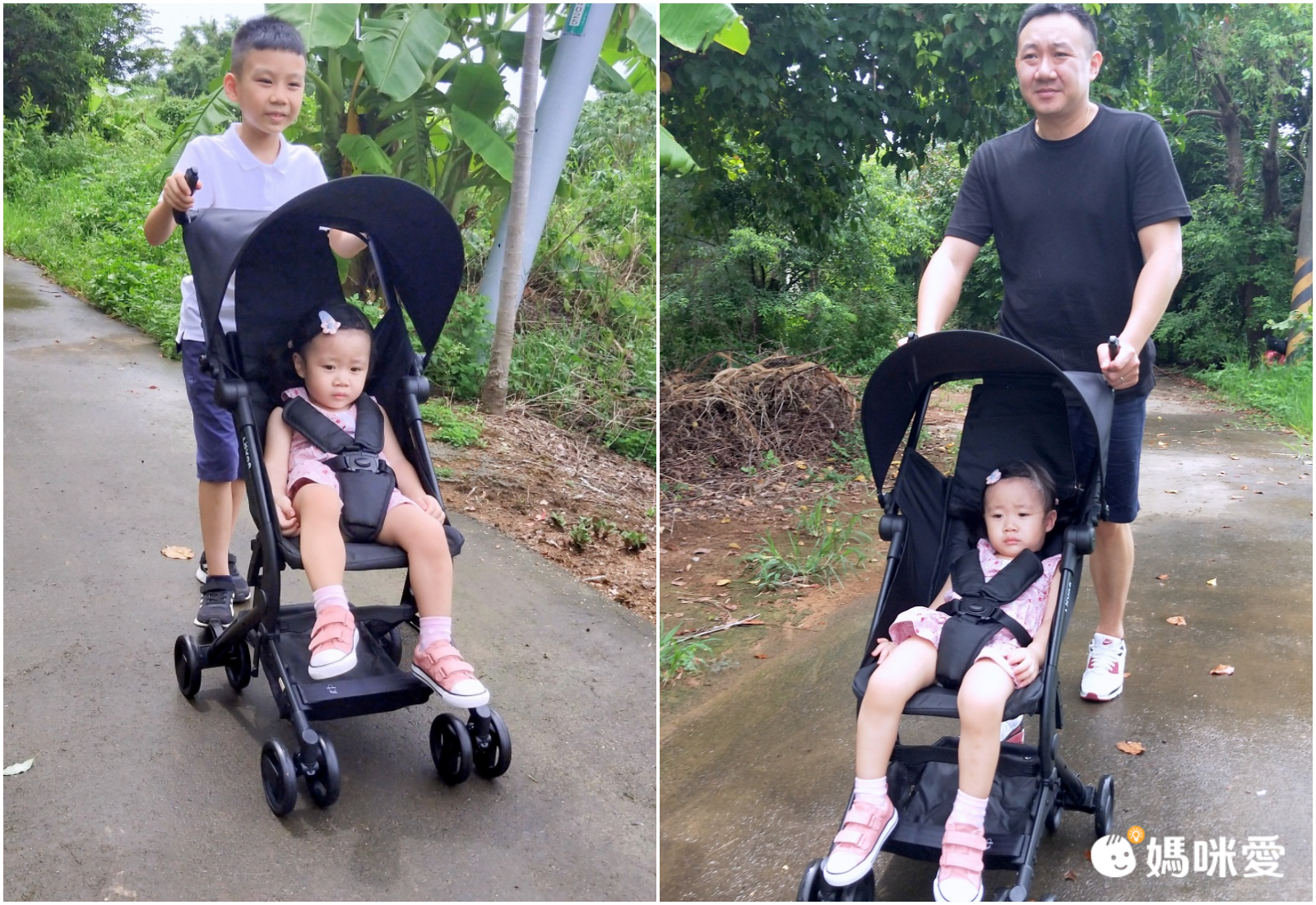 而且全黑外型真的很時尚,跟爸比穿著有夠速配~而且他只有4.9kg超輕量,高度也正適合哥哥,推起來完全不覺得吃力,有個大5歲的哥哥真可靠,媽咪我也覺得很窩心~