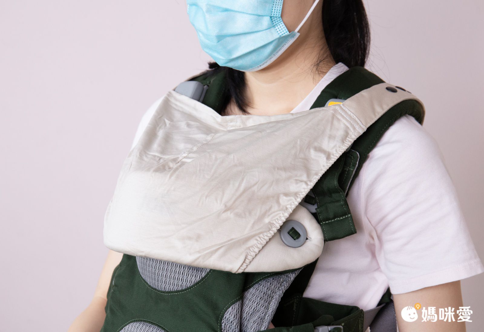 而且新生兒時期寶貝頸椎比較脆弱,可以將保護墊上翻扣起,就能提供足夠的支撐保護囉~