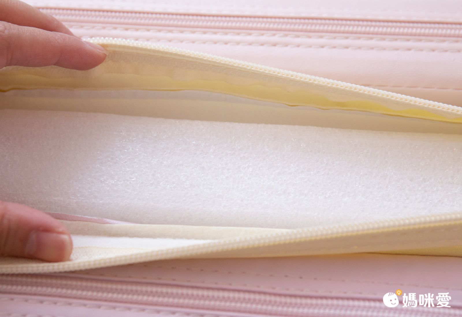 在細節上也是相當用心,不只PU外層質感相當好,隱形拉鍊設計,將拉鍊頭隱藏於裡面,從細節照護寶貝。