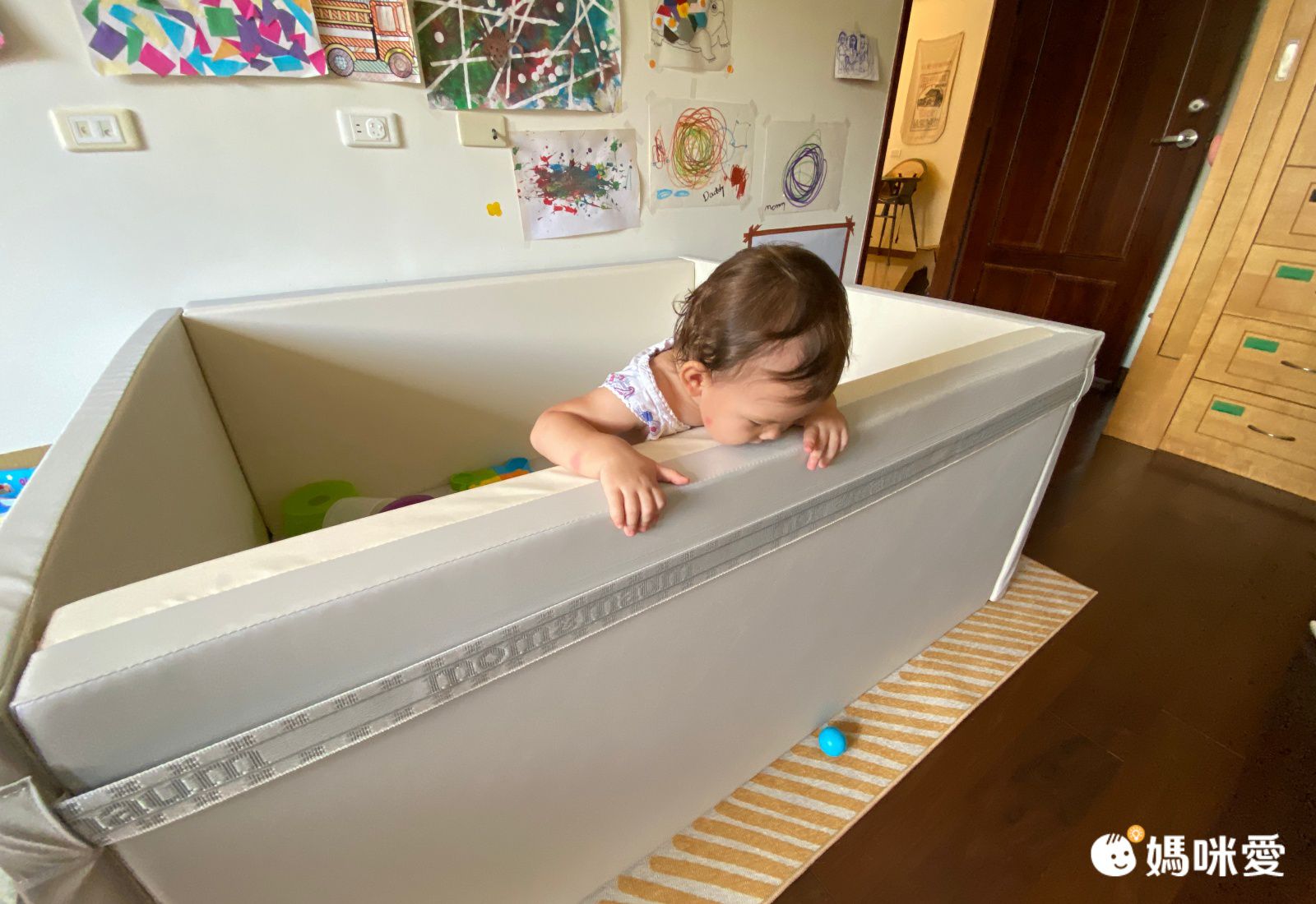 看在裡面玩耍的他,多麼開心~而且讓他在裡面,媽咪即使離開一下也很放心,家有嫩嬰真的很推薦媽咪們購入這款地墊界的變形金剛喔~