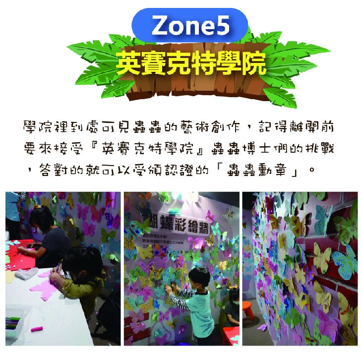 典藏了蟲蟲世界的知識殿堂,有最美妙的蟲界音樂及瑰麗萬花筒,還可以挑戰蟲蟲博士,領取「蟲蟲勳章」喔!