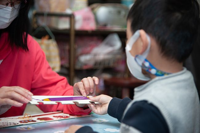 得知孩子的狀況後,媽媽非常焦慮、緊張,而離家裡到最近的療育教室,需要超過30分鐘以上車程,經社工評估後,轉介至伊甸基金會的到宅療育服務,由專業教保老師帶著教具及繪本,到家裡為孩子上課,也讓媽媽與孩子間,有更多親子互動機會。