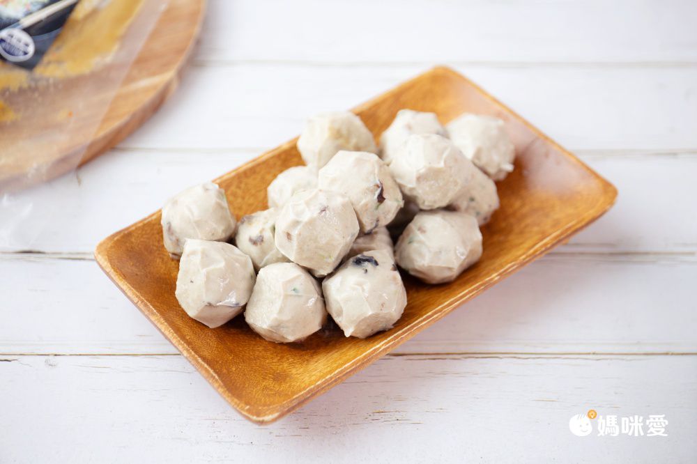 真空袋包裝之下的魚丸取出邊邊會有點不規則,但下水煮過馬上就澎起來囉!