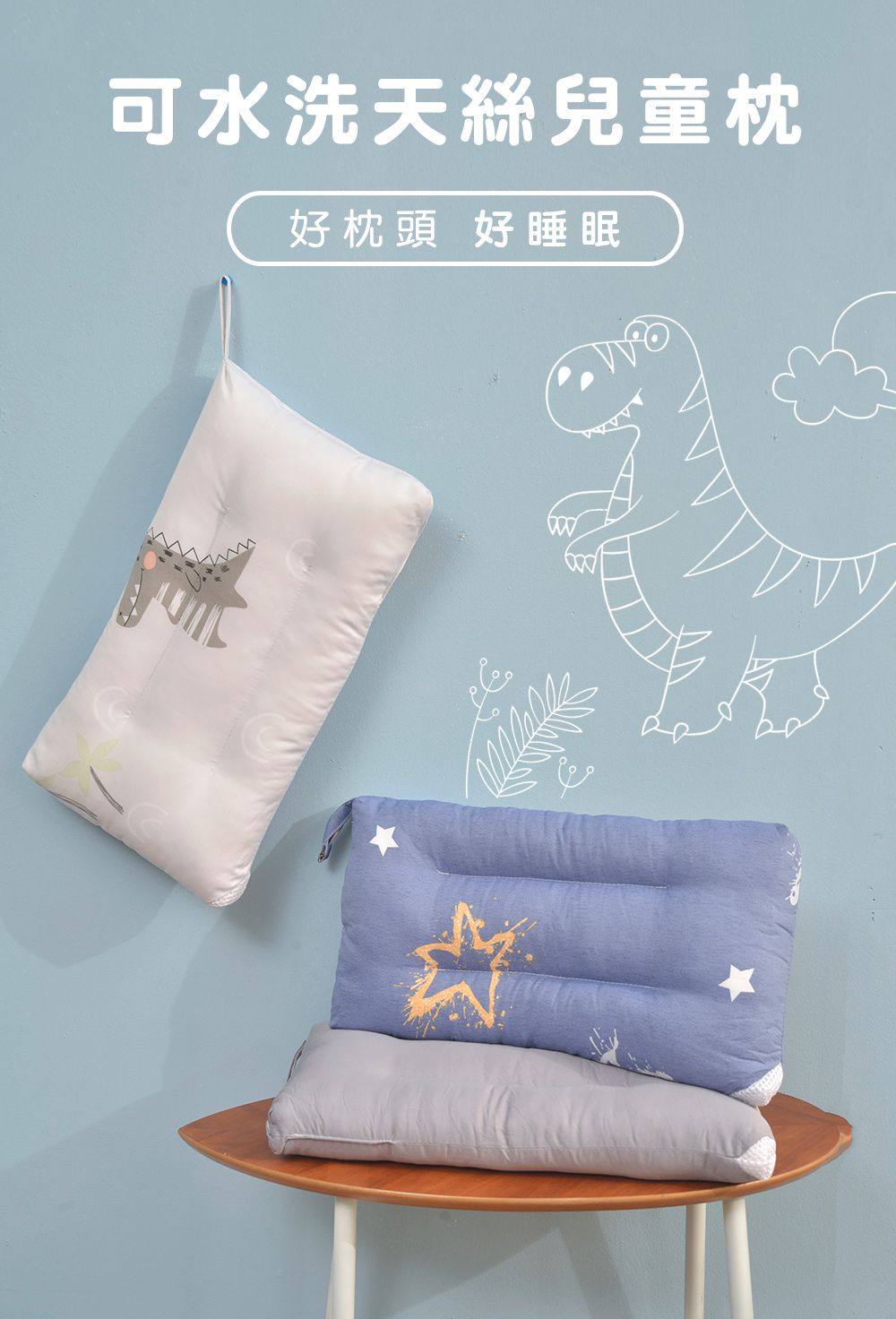 NEW  天絲可水洗抑菌兒童枕