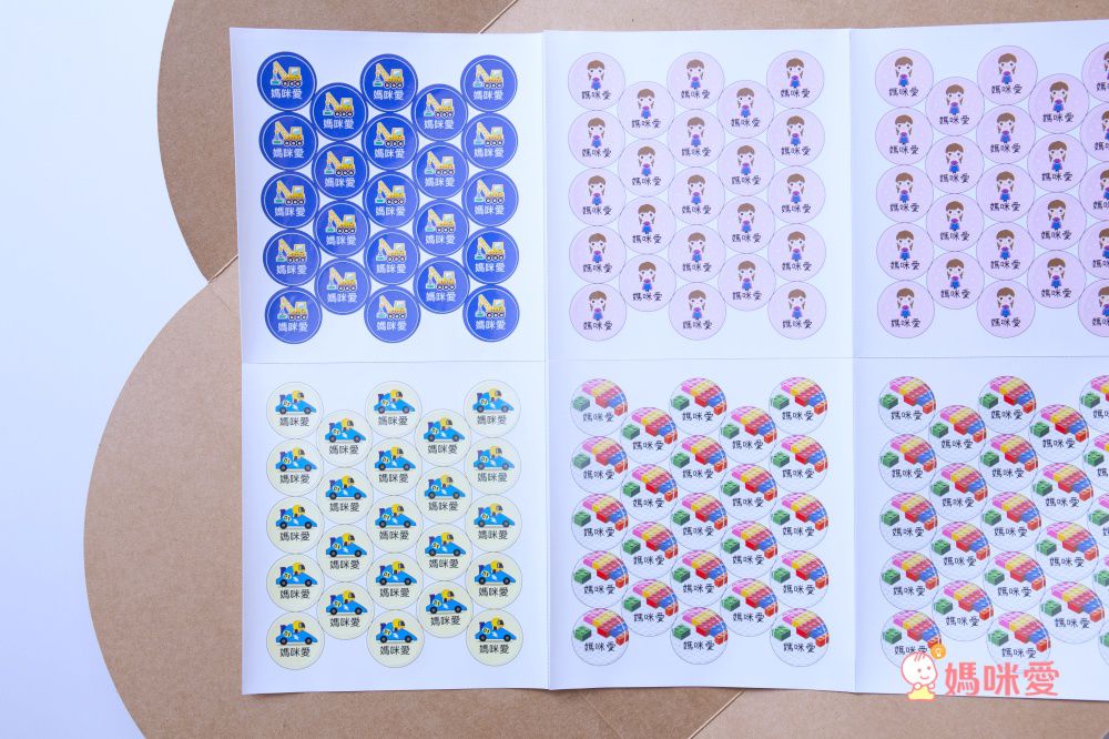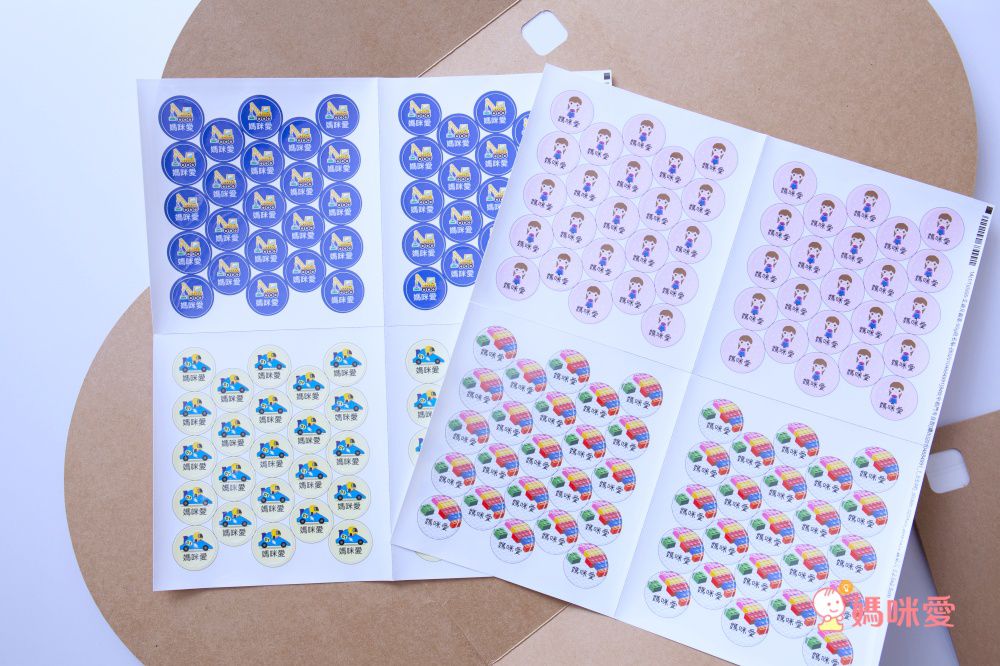 一組會分成 3 大張,每一大張有 92 張小圓貼紙,圓形直徑約 2.5cm ,總共 276 張姓名貼,很夠用吧!家裡的水壺、玩具、餐盒、繪本都可以盡情貼貼貼~ 可以買整份同一顏色,也可以挑選兩款混合