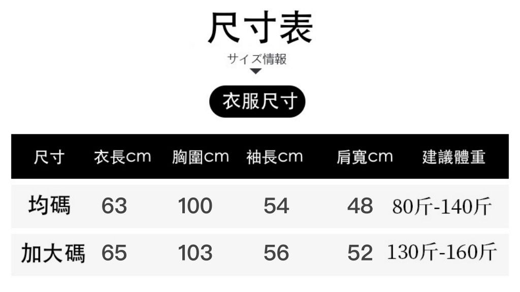 尺寸:均碼(建議50-70kg)、加大碼(建議60-80kg)