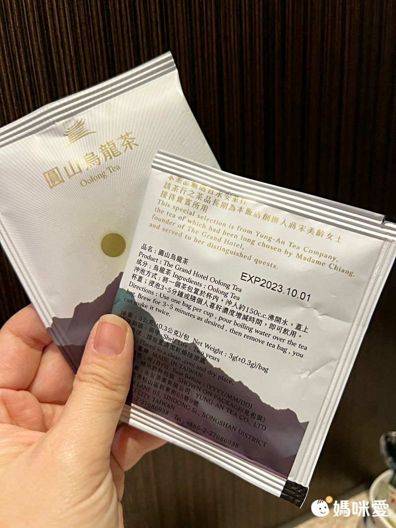 我尤其喜歡房內配的圓山烏龍茶,滋味清香優雅,後來才發現原來這是以前蔣宋美齡女士接待貴賓專用的茶葉。歷經許多年代的更迭,圓山仍在一些小細節上充滿著巧思
