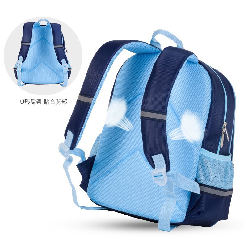 反光條設計讓孩子在昏暗地點行走更能起到警示往來車輛的作用。前扣設計跑動時也不擔心書包滑落更牢固