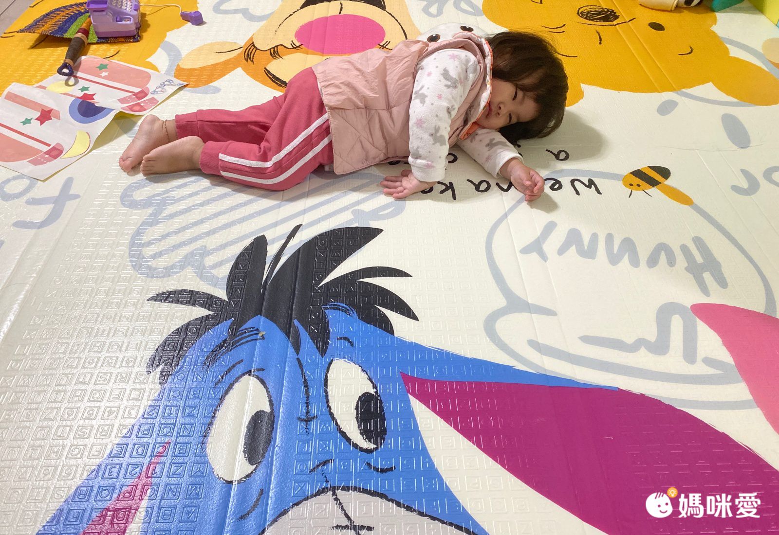 身為迪士尼狂粉,一打開地墊,媽咪我比小Lina還興奮啊XD雙面都可用~米奇維尼一次滿足,而且真的沒什麼味道,很讓人放心