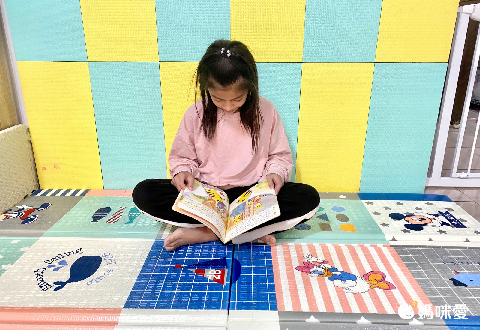 像現在天氣冷,鋪上迪士尼折疊地墊就能阻絕地板的涼意,小Lina跟姐姐都很喜歡在地墊上躺啊趴啊、看書畫畫,不用擔心愛在地上翻滾的孩子著涼了