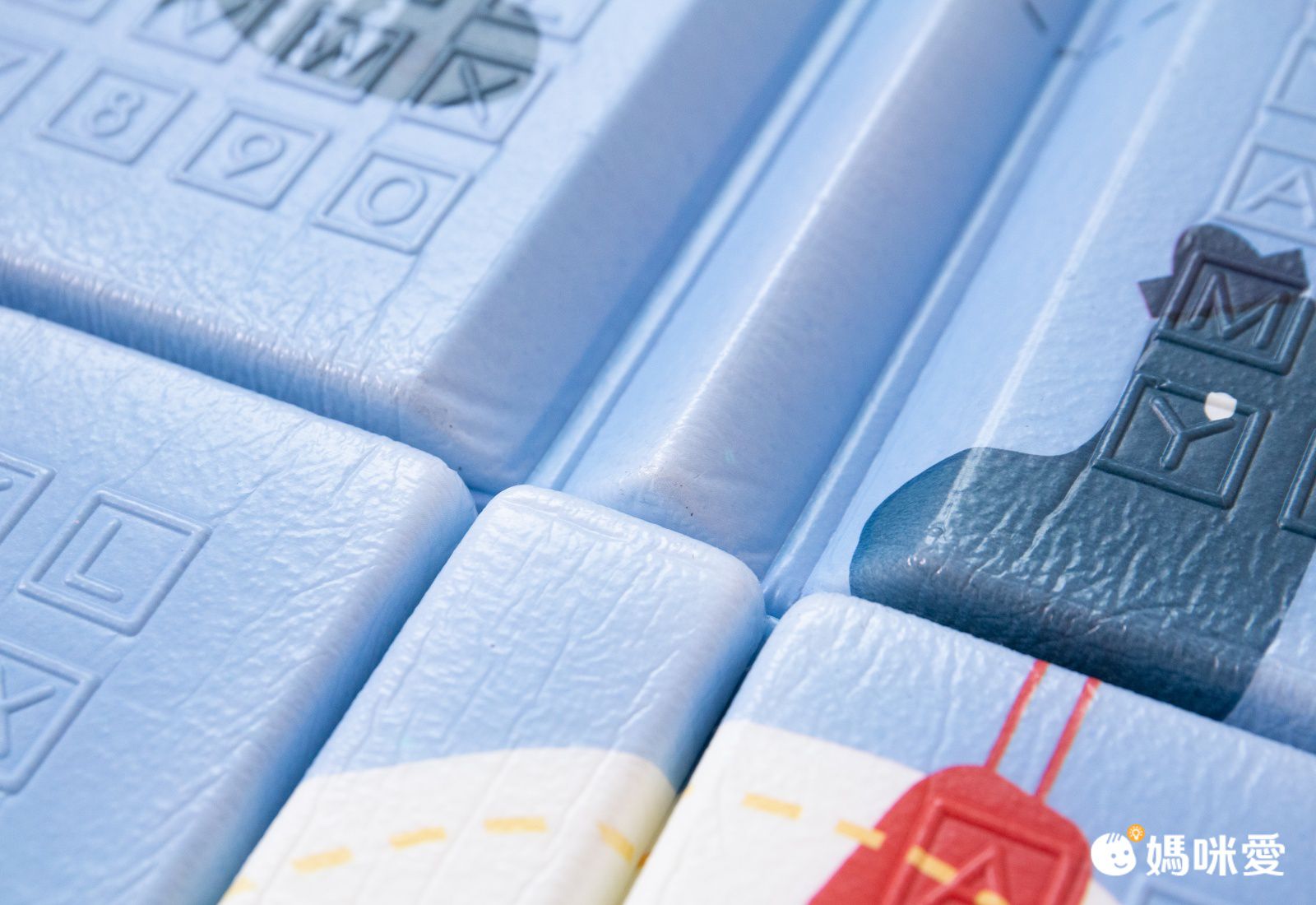 採用高密度發泡技術壓縮而成,形成無數穩固的3D蜂巢結構,抗壓減震,有1.5、2cm兩種厚度,可以依照孩子需求挑選喔~而且壓紋採用數字跟英文字母去加強摩擦力,鋪在地上也不太會滑動,用來教寶貝認字也很方便喔~