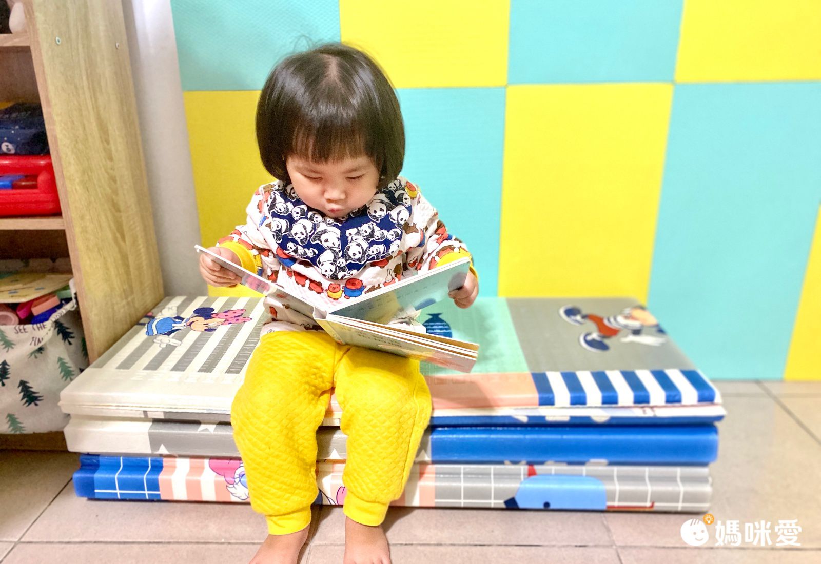 除了攤平使用,還可以折成不同的型式使用喔,我有時會全部折起來,直接變身成長椅子,小lina很自然而然的就會坐上去看書!媽媽甚是欣慰XD