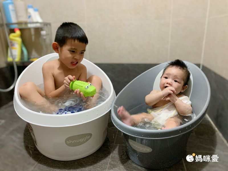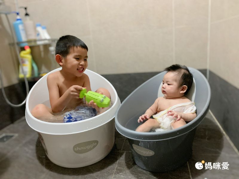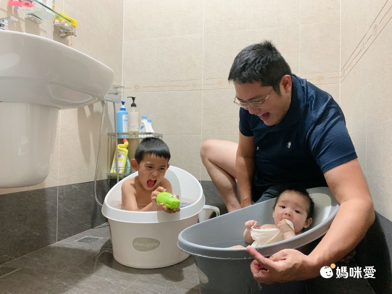 有了月亮澡盆,Evelyn媽咪輕輕鬆鬆就能達成同時幫大小寶洗澡的成就啦!(๑•̀ㅂ•́)و✧