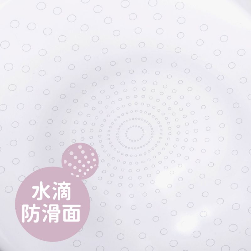 MAX版一樣有防滑底座,爸媽不用擔心大寶不小心滑進水裡~此外,較大的孩子已經會站會走了,因此MAX版的澡盆內部特別增加了水滴防滑設計,孩子踩進澡盆或是洗完澡站起身,就不怕會跌倒啦!