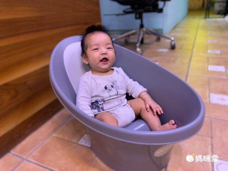 模擬媽咪子宮的設計能給寶寶滿滿的安全感♡(´∀` ) 平時Evelyn媽咪也會讓小李米坐在月亮澡盆內,跟隨著媽咪移動,就能就近照看寶寶囉