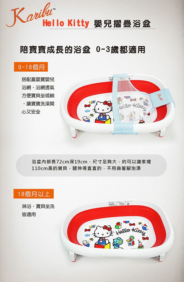 Hello Kitty聯名【Karibu 嘉嬰寶】嬰兒摺疊浴盆,贈洗澡泡泡書!