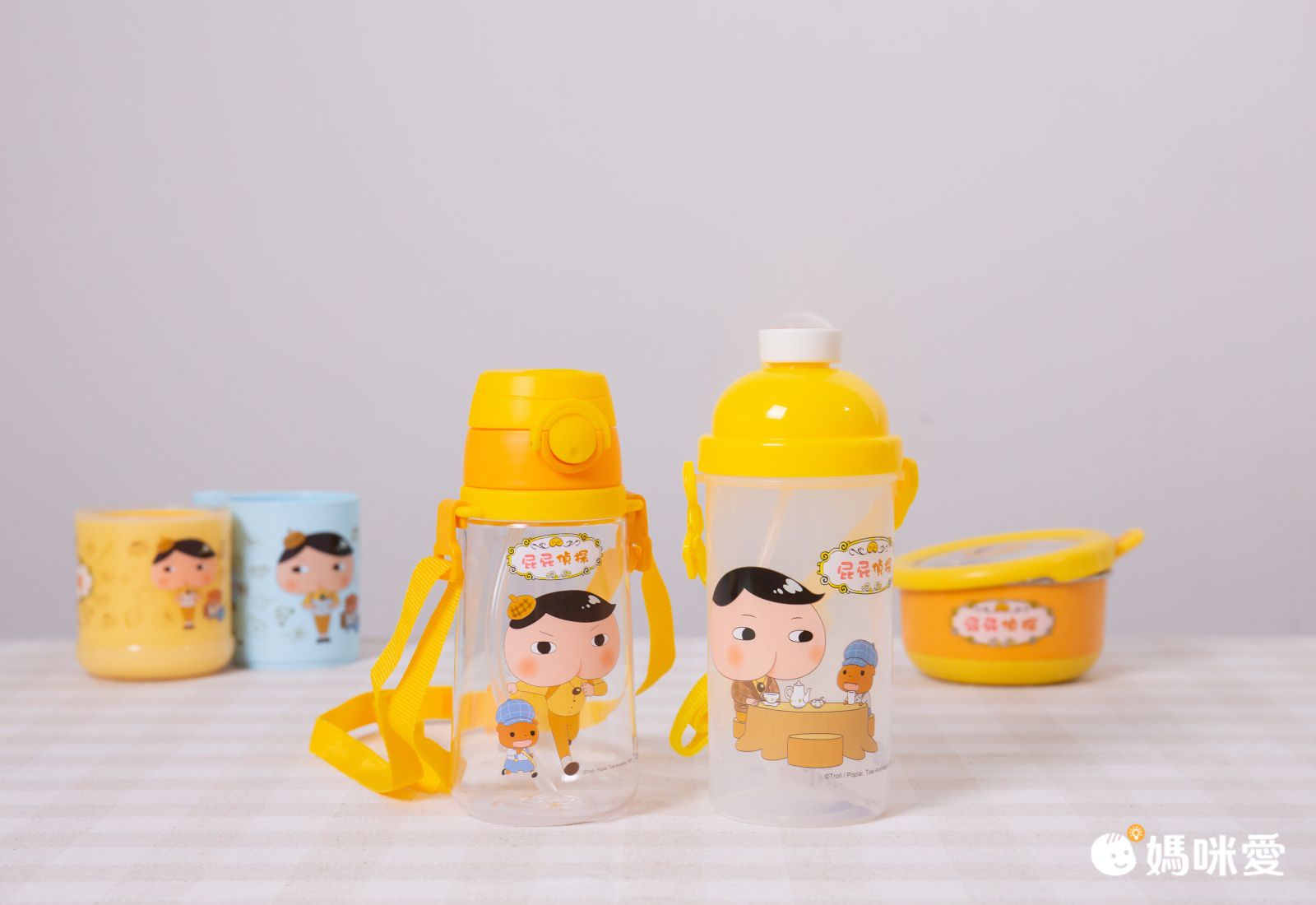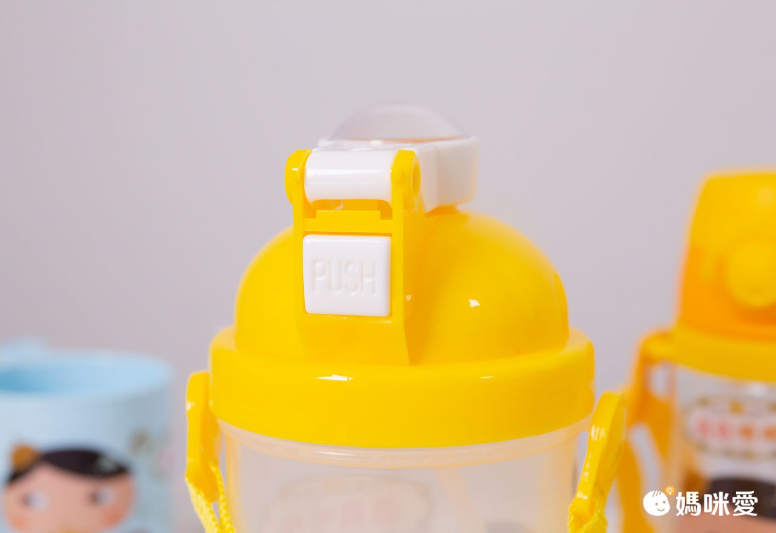 彈跳杯則是按壓後方按鈕,就能開啟囉,上面還有屁屁偵探的圖案呢~也太萌了吧