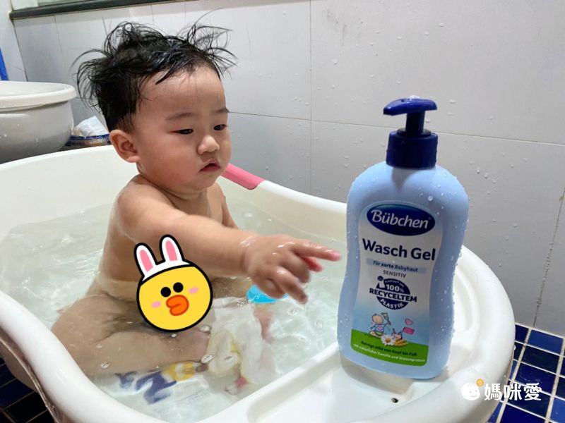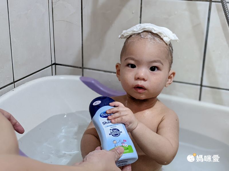 王美媽咪兩年多來幫寶寶洗澡都已經洗到夫妻倆也會討論哪個品牌的洗沐商品,現在連語言大爆發的大寶王美也開始會加入評論了!而在洗澡的過程中被王美直說:「好香」的就是來自德國的貝臣洗髮沐浴露~