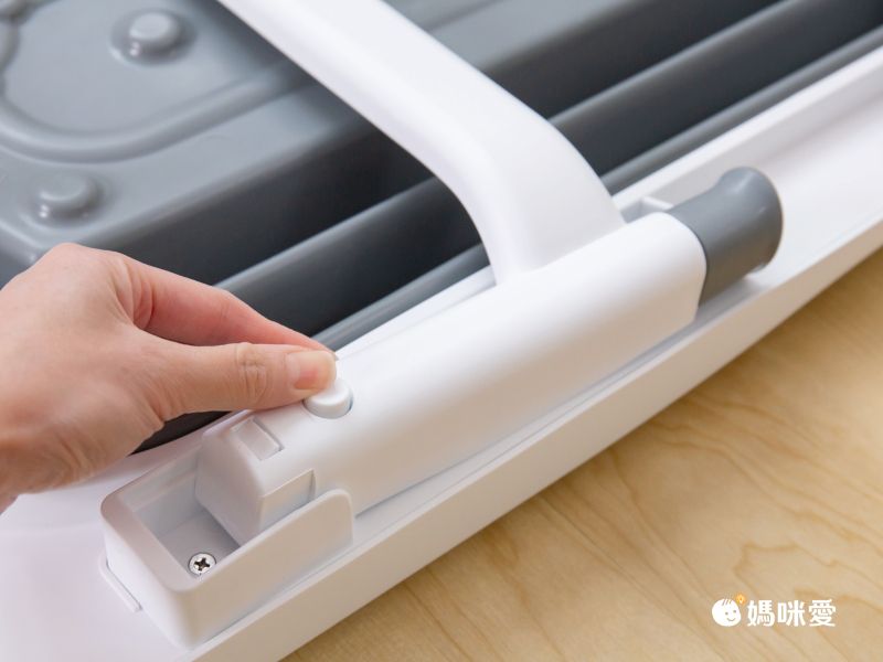 注意在開合支撐腳架時,要記得將腳架上的按鈕壓下才能順利操作喔!這樣也能防止孩子不小心誤觸而受傷