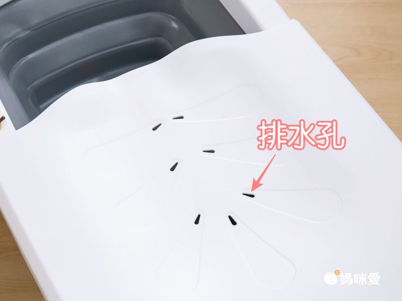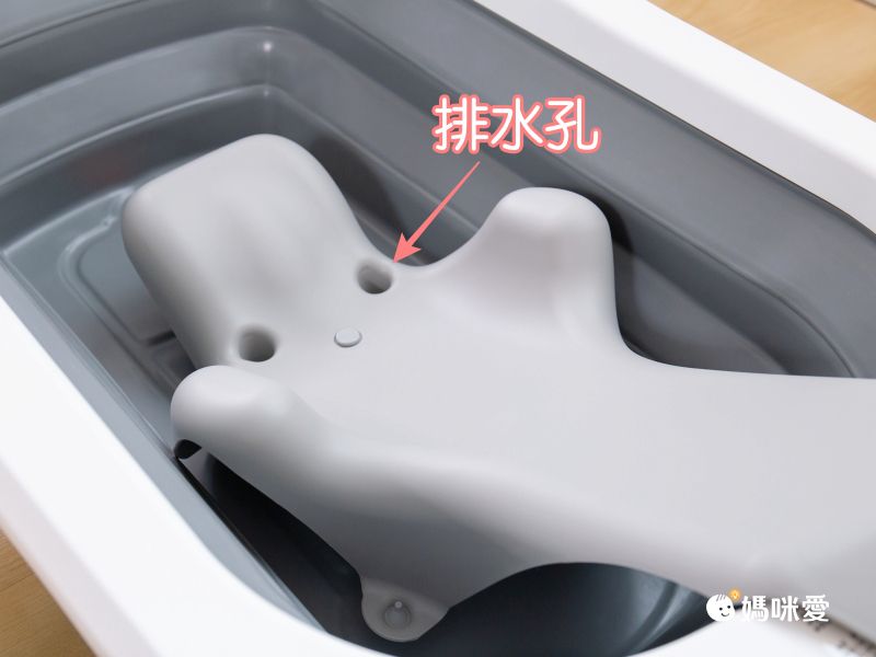 洗頭板跟座椅一樣有排水孔設計,不用擔心會積一大灘水讓寶寶不舒服囉