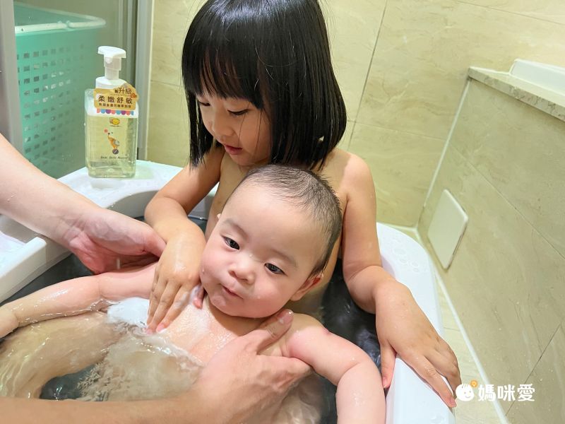 姊弟倆也能一起泡澡~Hailey本來還不情願跟弟弟一起擠,後來發現空間很大,開心的要幫弟弟洗澡XD