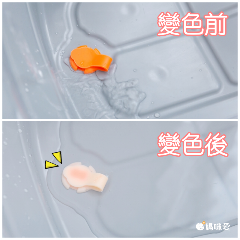 不僅如此,水塞還有感溫功能!幫嬰兒洗澡的最適當水溫就是37度,當水溫超過37度水塞就會變成白色,因此爸媽可以參考,等水塞變色後再讓寶寶入浴唷