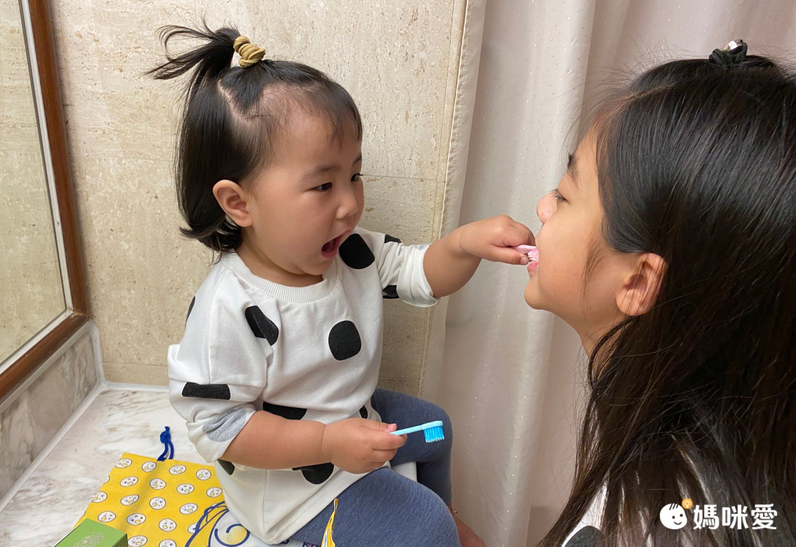 不過小Lina是第一次自己拿牙刷刷牙,馬上派出媽咪的神隊友Mina姊姊,讓妹妹學姊姊刷牙啦~兩姐妹一起刷牙的樣子真的太溫馨啦