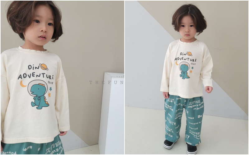 The Funny也是來自韓國南大門的童裝品牌~主打百搭休閒風喔!正韓設計製造,品質好又可愛喔 (*´∀`)~♥ 他們家的設計也是蠻多樣的,用了很多不同元素,像是 蠟筆塗鴉、復古印花、拼接撞色、落間、荷葉邊等等...版型也很多,媽咪們可以挑挑適合自己寶貝的款式呦 (ノ>ω<)ノ (模特男寶 97cm 15kg,著用 7 號)