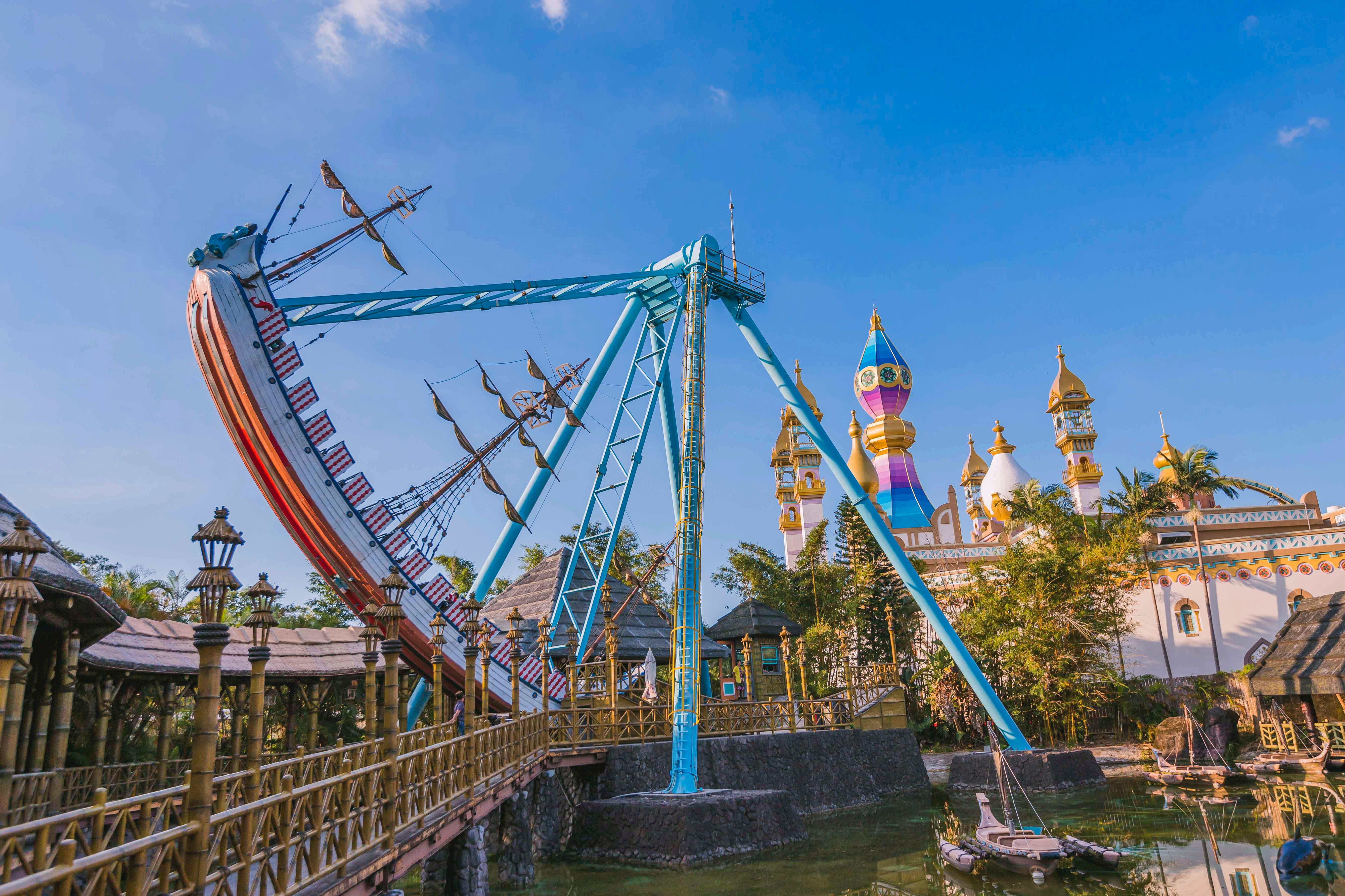 【勇闖人氣遊樂設施】「笑傲飛鷹」、「大峽谷急流泛舟」、「海盜船」、「大怒神」等知名遊樂設施